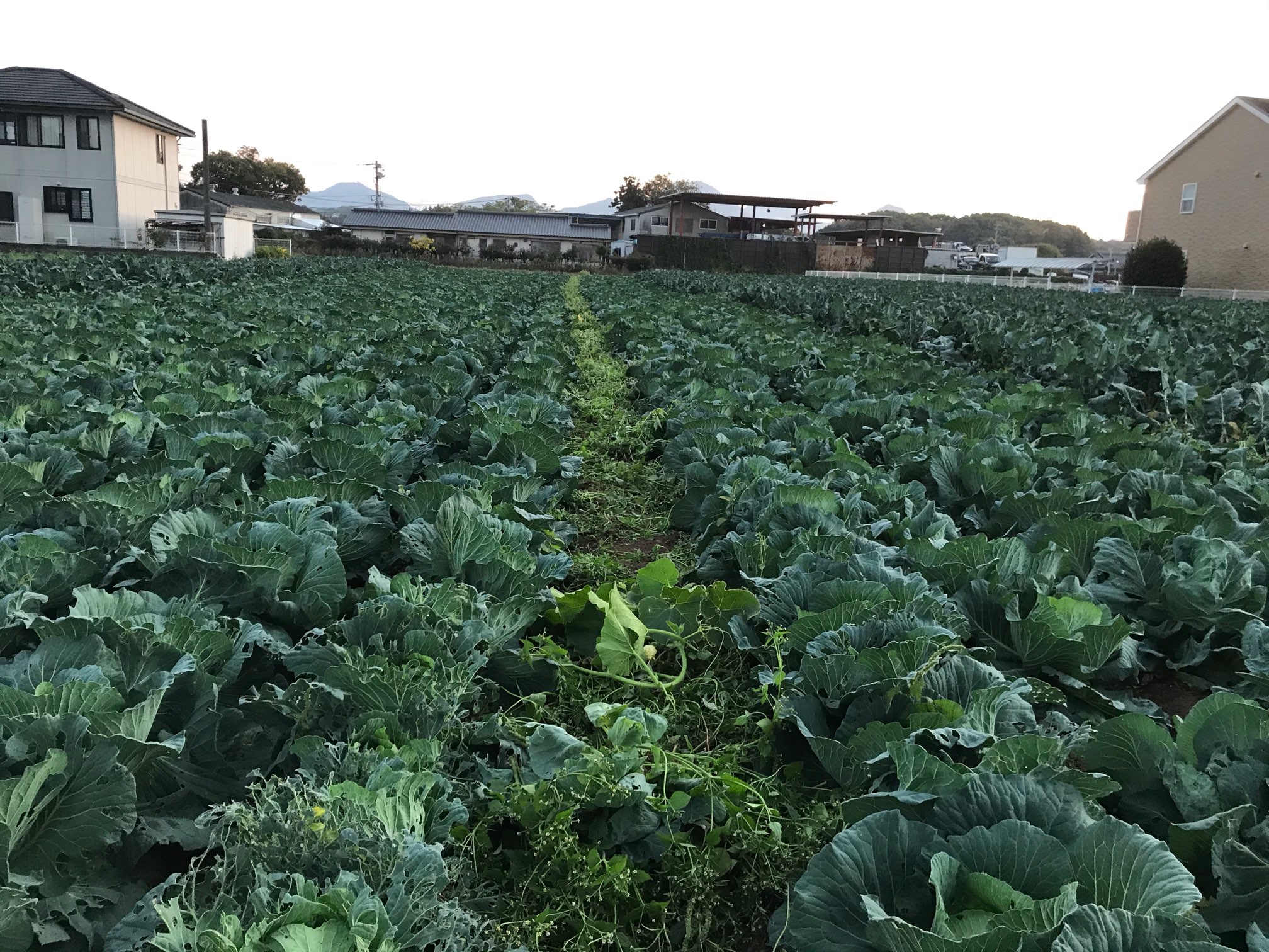 「みかん」畑 キャベツ 暖かい日が続き、キャベツが草に見下ろされてしまいました。